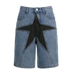 Design Contrast Color Five-pointed Star Patchwork Jeans Female (Option: Blue-S)